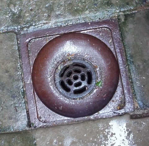 Empty - a clean, empty drain under the steps up to 13 Oak Cottages, the worker's cottage at Quarry Bank Mill, Styal, Cheshire.