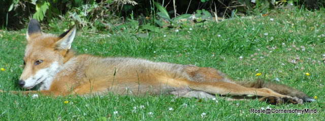 Mr Fox has been visiting the garden in the early mornings and evenings. A few days ago I spotted him relaxing on the top lawn. I'm glad he feels safe here.